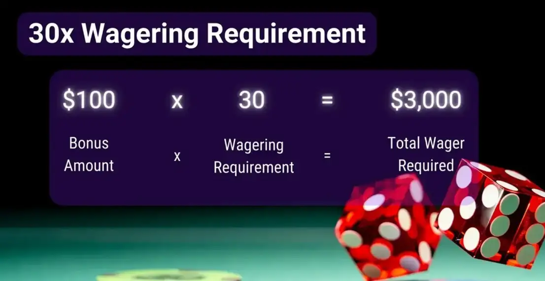До прикладу, вищезазначений вейджер x30 означає, що для відіграшу бонусу потрібно зробити ставок у 30 разів більше суми бонусу. Уявімо якщо ви отримали бонус у розмірі 100 грн з вейджером х30, потрібно зробити ставок: 100 × 30 = 3 000 грн, перш ніж гроші стануть доступними для виведення.