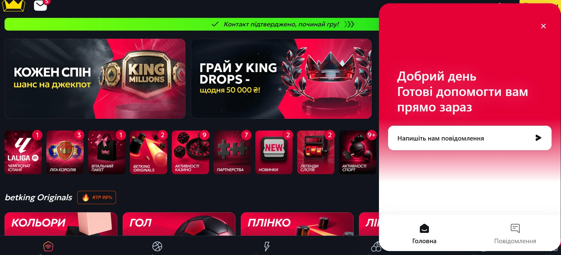 - Повідомлення. Користувач може налаштувати Push-повідомлення про нові ігри, результати матчів або оновлення платформи, залишаючись в курсі подій без необхідності постійно перевіряти сайт.