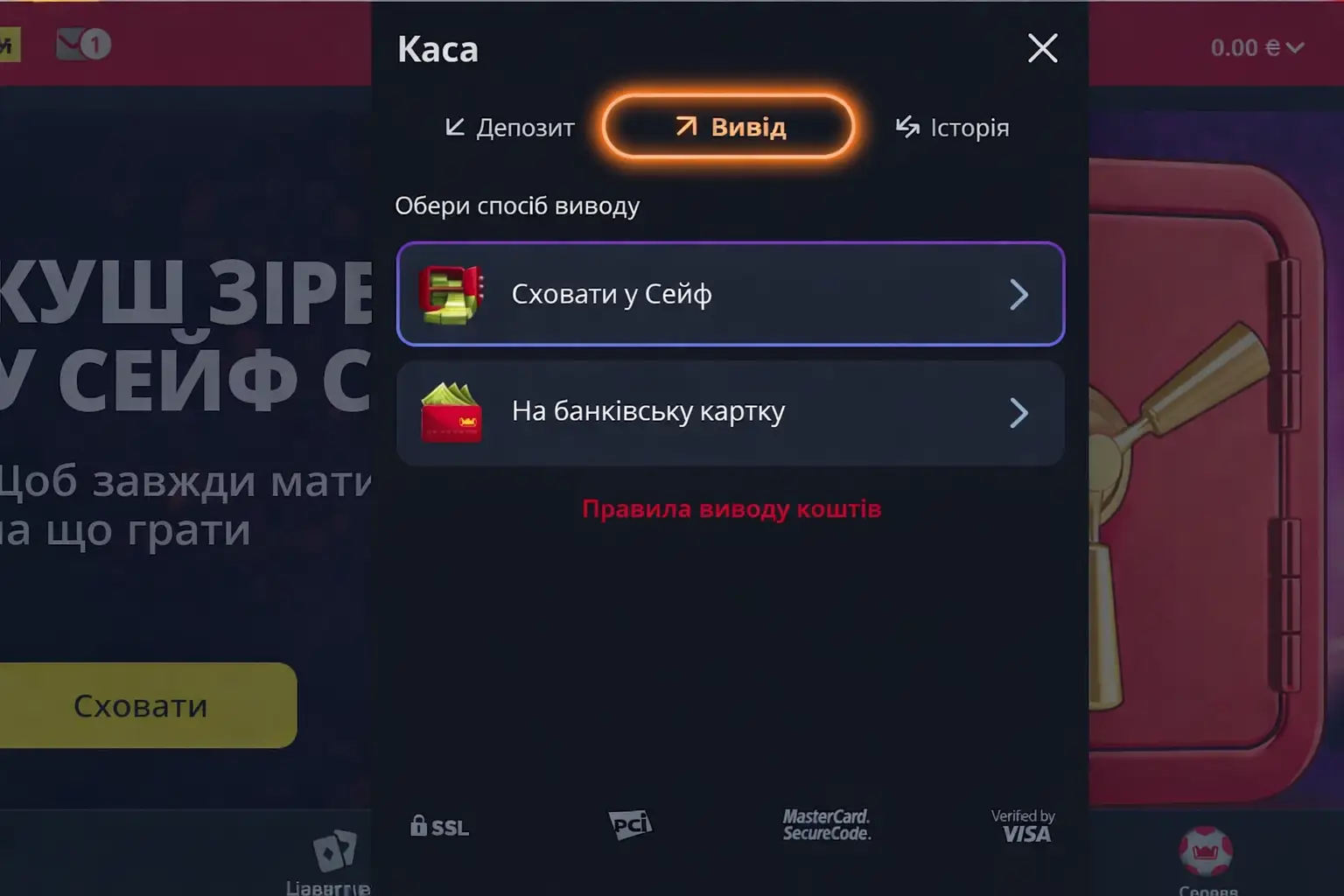 У 2026 році користувачам доступні два основні варіанти, як вивести кошти з Betking казино. Найпоширеніший спосіб - банківські картки Visa та MasterCard. Як правило, подати заявку можна на ту саму картку, з якої здійснювалося поповнення рахунку. Такий підхід застосовується з міркувань фінансової безпеки.