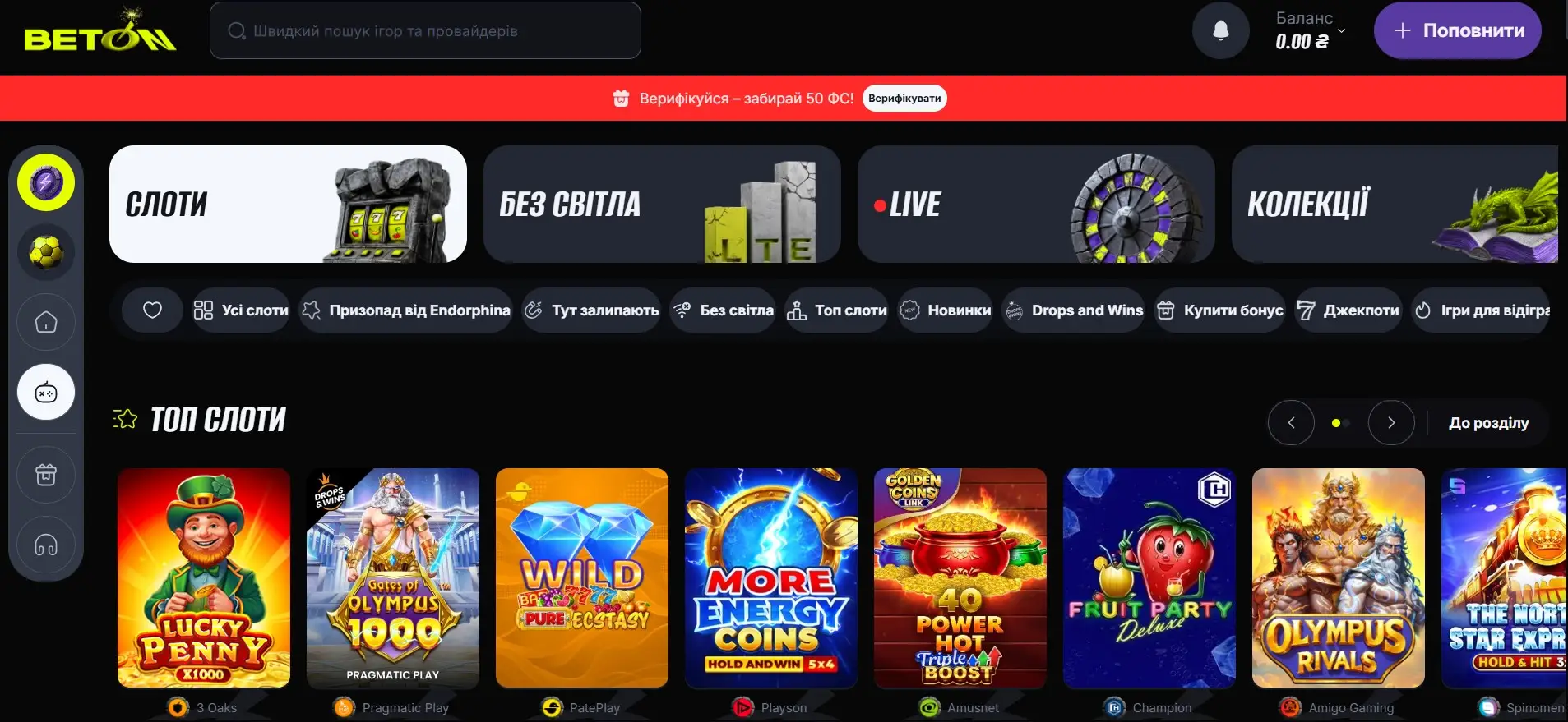 Beton уже не перший рік легально працює на українському ринку онлайн азартних розваг й за цей час встиг сформувати велике поле постійних гравців. Поєднання сучасного, зрозумілого інтерфейсу, стабільного програмного забезпечення, регулярних акцій та цікавих бонусних механік закріпило за брендом репутацію одного з найвідоміших майданчиків у своїй ніші.