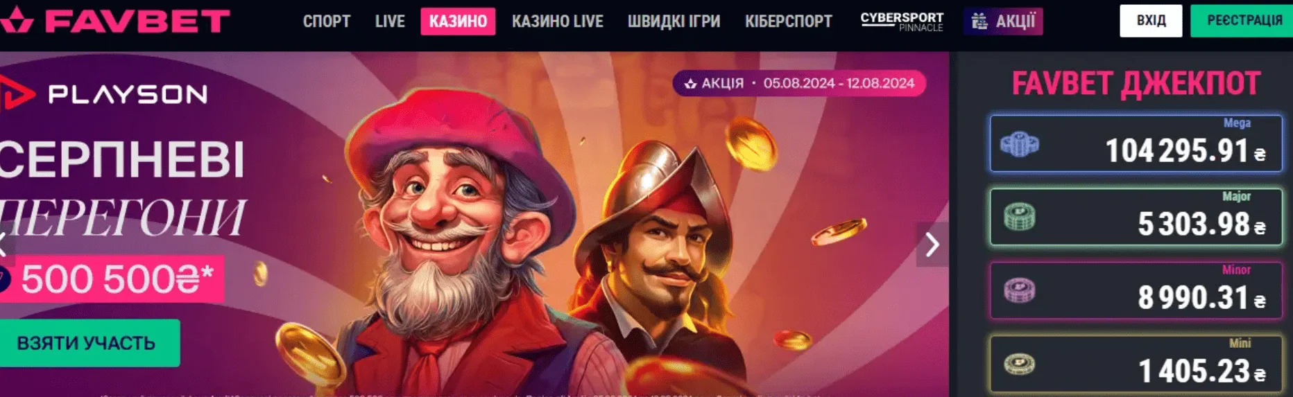 - доступ до ігор казино;