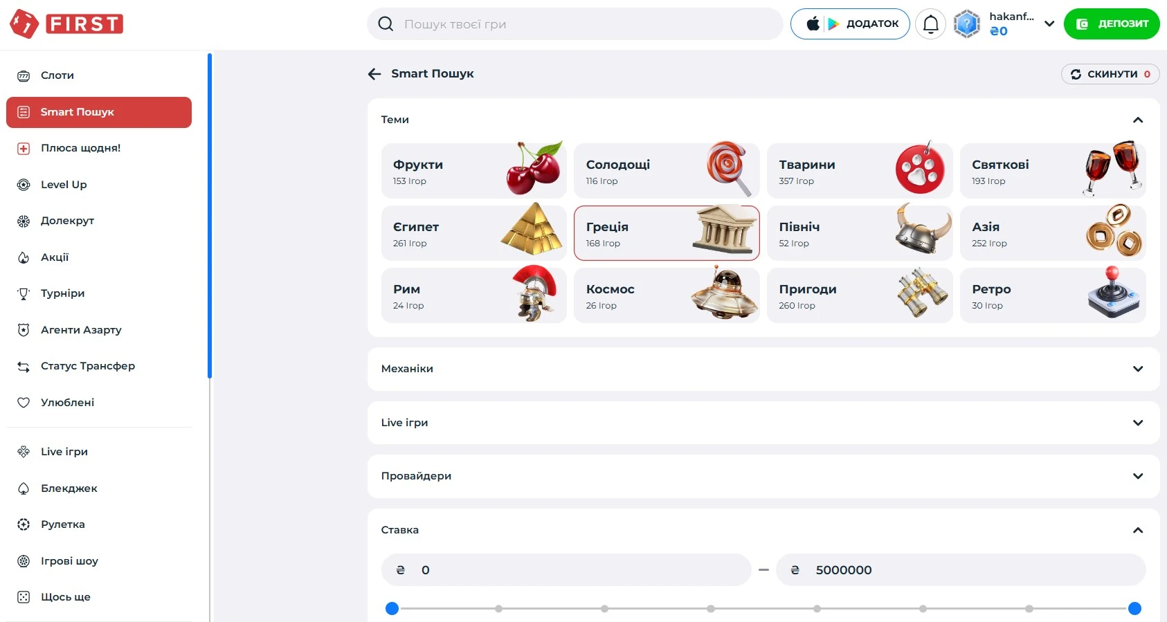 Разом з live-казино, настільними іграми, рулеткою та іншими форматами слоти First Casino формують основний масив розваг, який цікавить аудиторію.