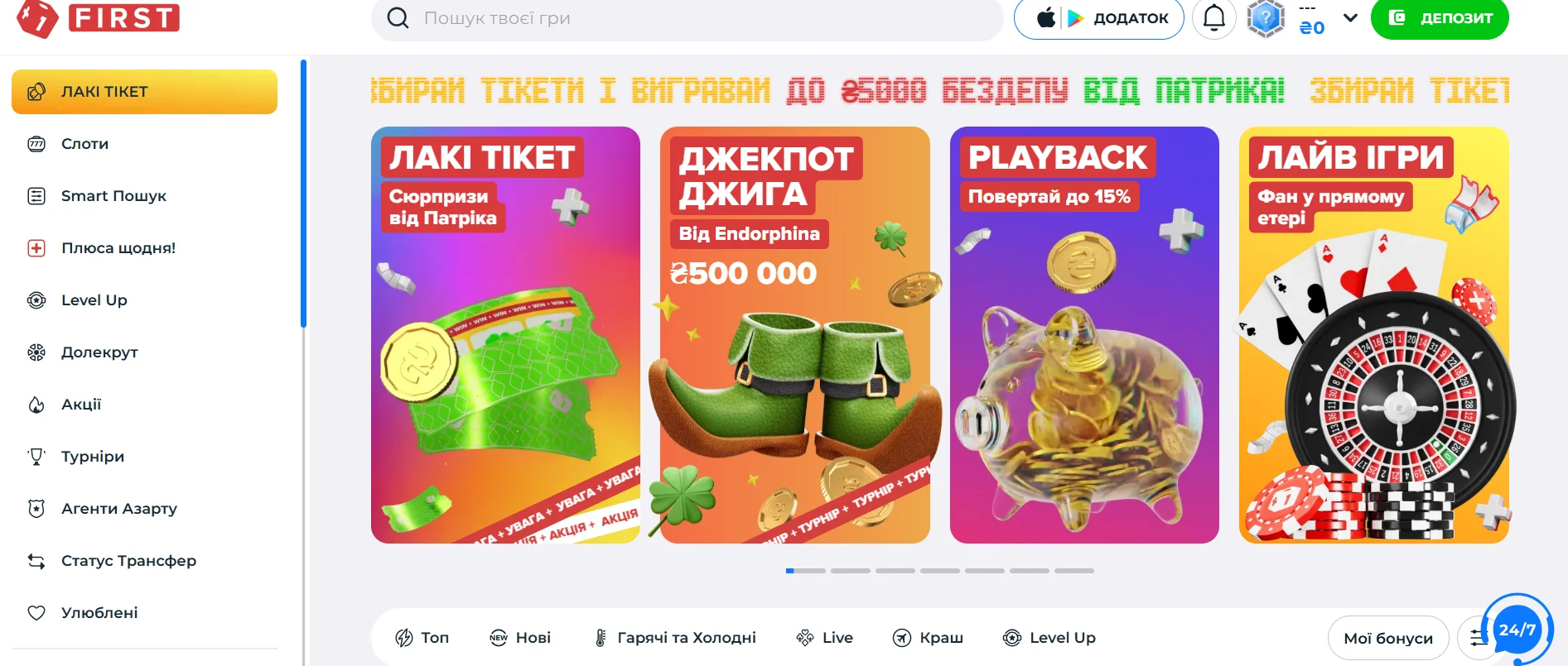 Мінімальна сума поповнення First Casino зазвичай становить від 50 до 100 гривень, залежно від платіжної системи.