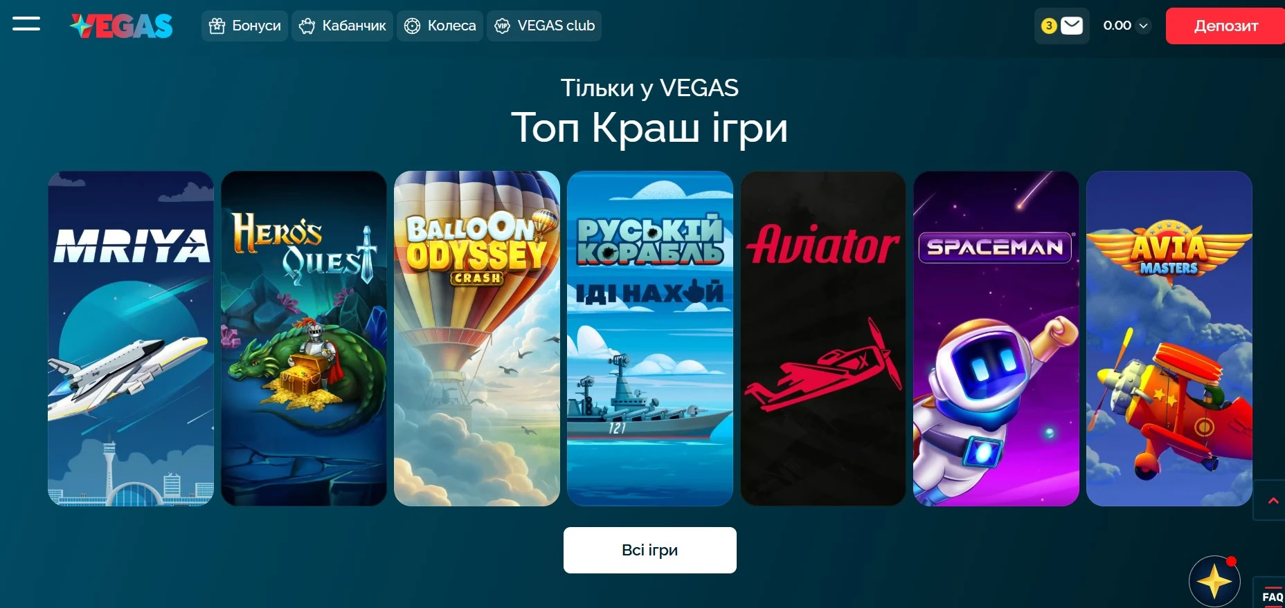 Однією з ключових переваг онлайн-казино став великий вибір ігор. Каталог ігрових автоматів Vegas налічує понад 1000 позицій та регулярно поповнюється новими релізами. З перших місяців роботи оператор орієнтувався передусім на поціновувачів слотів – саме ігрові автомати стали основою платформи. Водночас асортимент поступово розширювався: до каталогу додали live-казино з реальними дилерами, швидкі ігри та авторські вегас слоти з тематикою, близькою українській аудиторії.