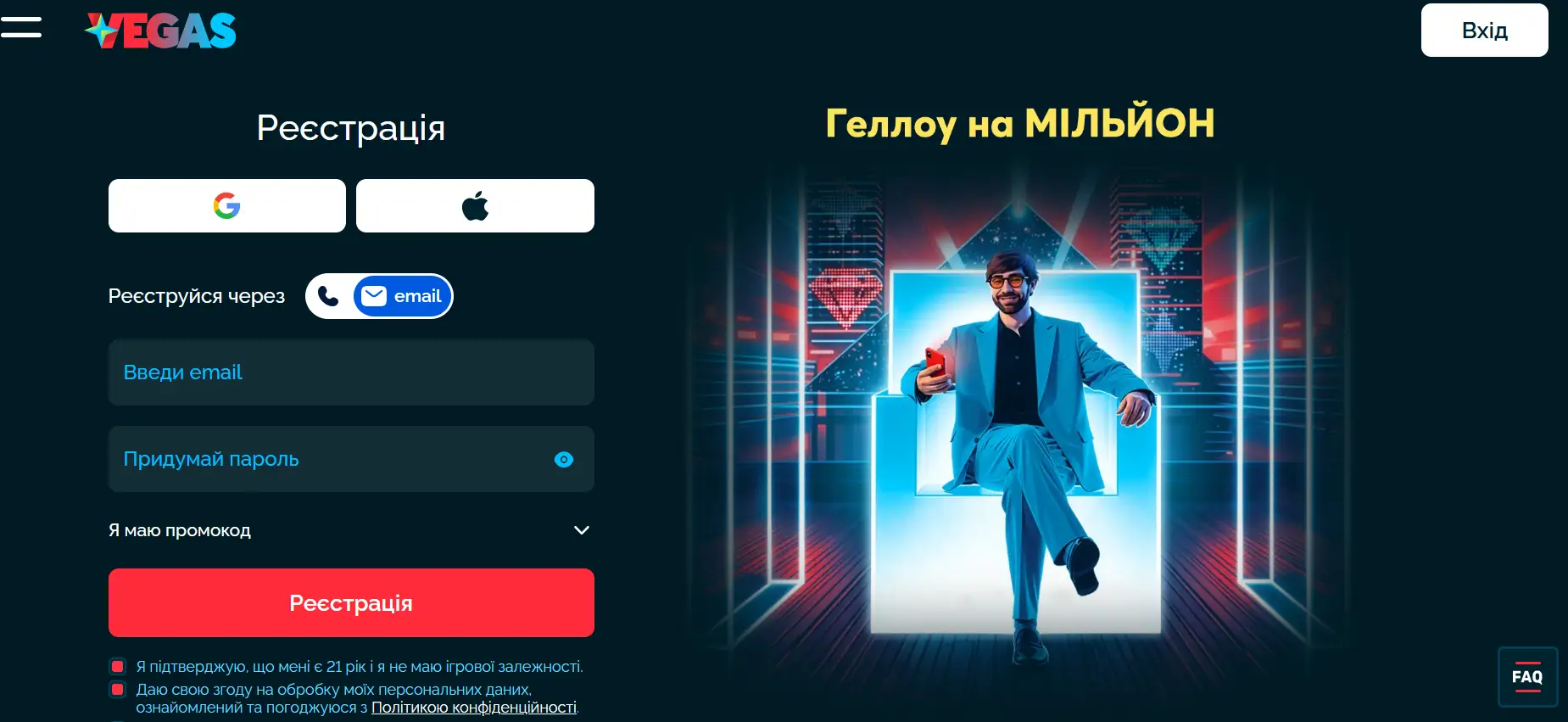 Реєстрація в казино Vegas: доступні способи