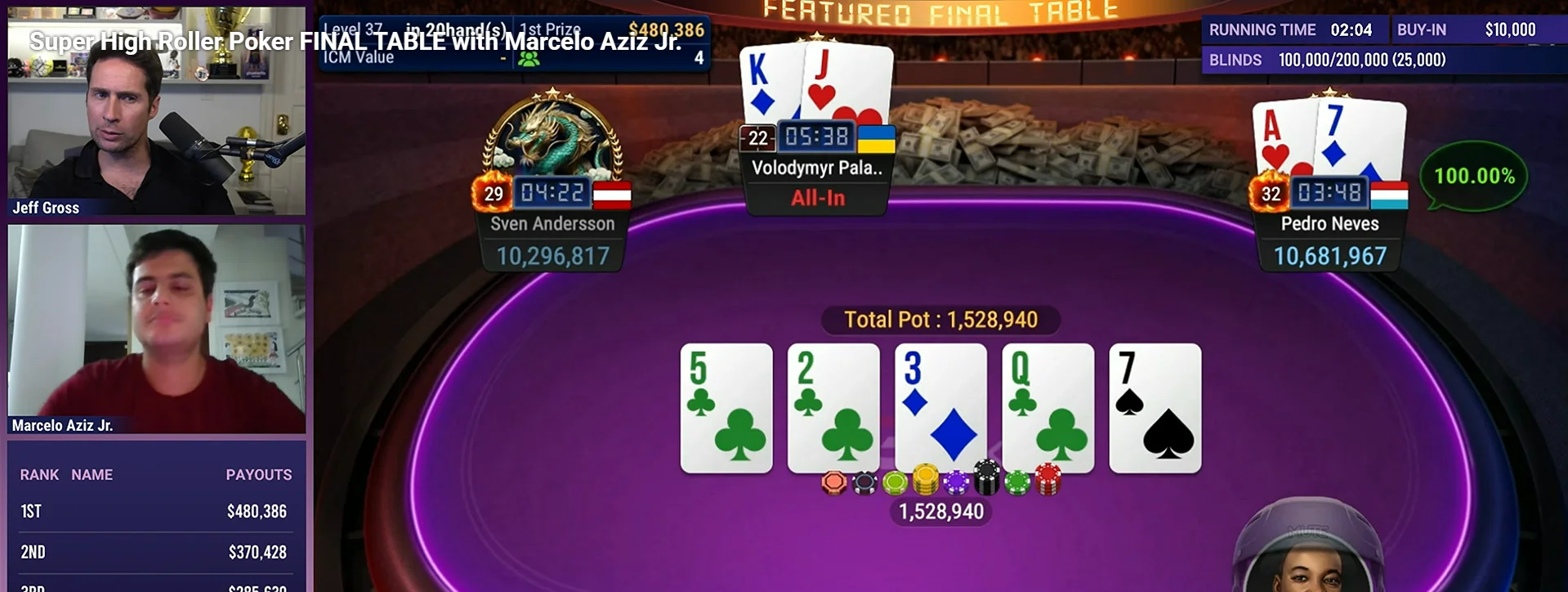 Свен Андерсон вибув наступним, далі нас очікував гедзап Фогельсанг проти Педро Невеса. З цієї битви переможцем вийшов Педро Невес , за перше місце португалець отримав $480,386.