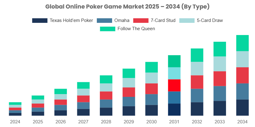 Ринок онлайн-покеру найближчими роками очікує суттєве розширення. Згідно з дослідженням консалтингової та аналітичної компанії Custom Market Insights (СМІ), за наступні десять років обсяг цього сегмента може зрости у понад три рази — з $6,3 млрд у 2025 році до $22,4 млрд у 2034-му.