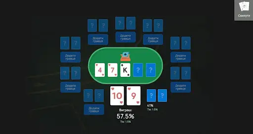 Важливо: на кожному етапі заповнення полів покерний калькулятор автоматично оновлює розрахунок. Ви зможете наочно побачити, як змінюються відсотки виграшу залежно від нових даних.
