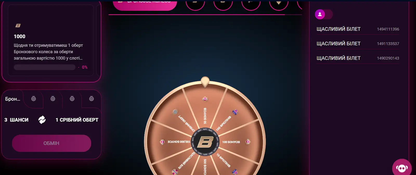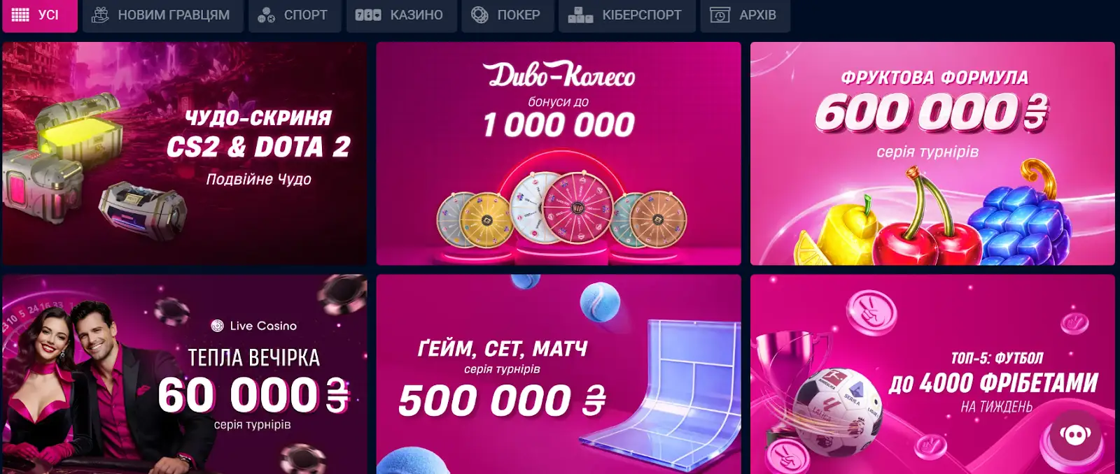 Окремі коди існують для турнірних квитків у покерних румах або додаткових обертів «Колеса дива», де можна виграти реальні призи — від iPhone до новенького авто.